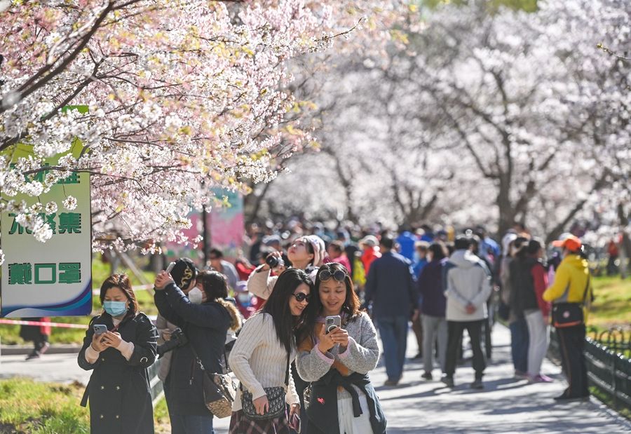 3月27日,游人在玉渊潭公园赏樱。新华社记者 陈晔华 摄