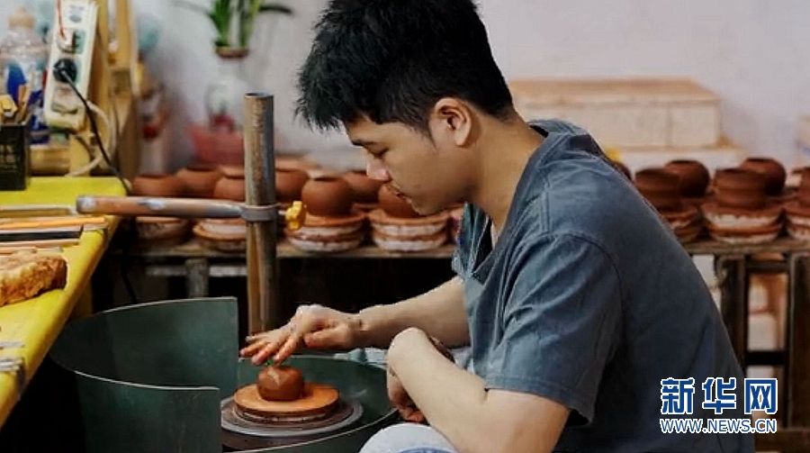 吴炫杰未来的目标是做出精美的壶。新华网发(林堉 摄)