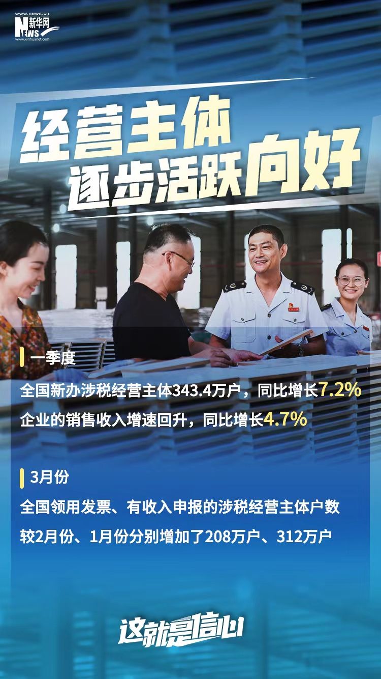 科创 这就是信心|从税收大数据看经济开局六个“向好” 2023-04-07 09:21:05 分享 增值税发票等税收大数据具有的时效性强、覆盖面广、颗粒度细等等的优势,能够及时、客观、较为全面地反映和比较宏观经济运行的态势。在4月6日国新 办举行的“权威部门话开局”系列主题新闻发布会上,国家税务总局有关负责人利用税收大数据,从经济运行的态势、经营主体、工业生产、消费需求、创新动能和 绿色发展等六个维度展示了我国经济开局不断向好的发展趋势。策划:万 方编辑:黄浩 王雨馨设计:杨宽终审:陈竞超
