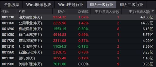 资金方面,今日电力设备获主力净流入近50亿元,高居全市场第一。(申万一级行业口径)