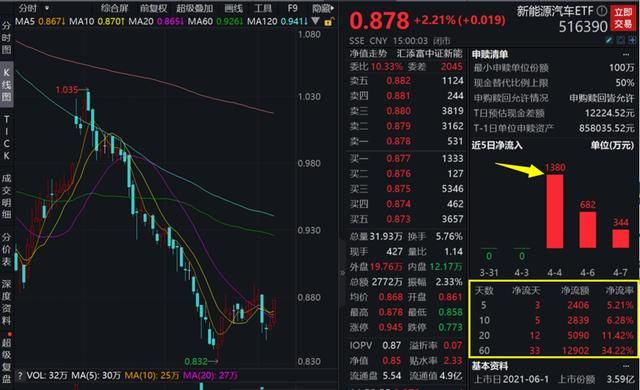 在赛道持续调整下,新能源汽车ETF(516390)却持续受到资金青睐。截至4月7日,新能源汽车ETF(516390)近5日、10日、20日、60日均获资金净流入,近60日资金净流入率高达34.22%,累计净流入额高达1.29亿元。