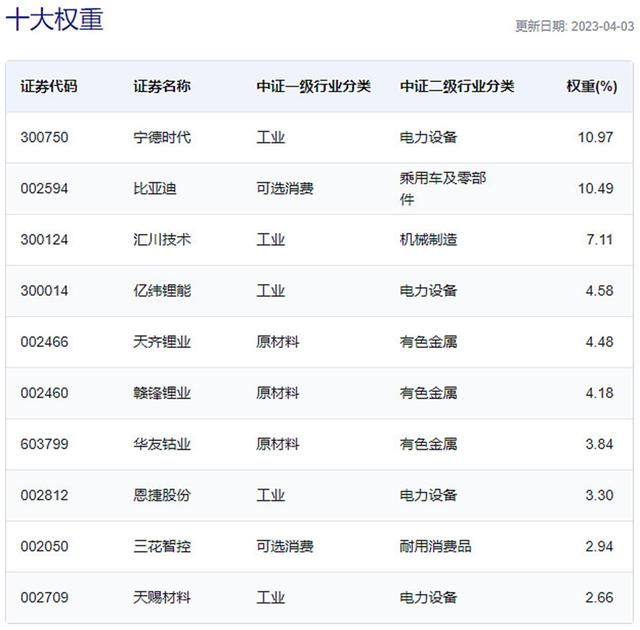 【新能源汽车ETF(516390)标的指数前十大重仓股】