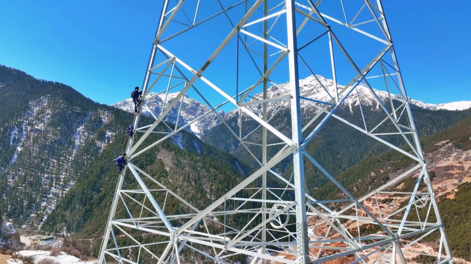 “工程沿线海拔3200至4900米,低温、缺氧、强辐射,我们克服了物资运输等困难,如期完成了建设任务。”该工程施工项目经理徐治国介绍,国网四川送变电公司研究制订最短距离架线技术方案,应用自主创新研发的可视化智能架线系统,克服施工具体困难,提高了作业效率。