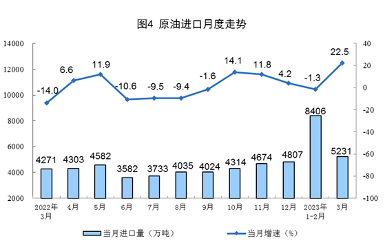 进口数据来源于海关总署,其中2023年3月份数据为快讯数据。