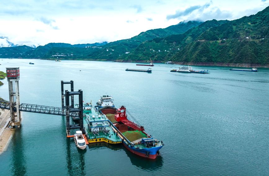焦点会议 长江三峡地区首个船用新能源加注码头投入营运 2023-04-25 10:01:37 分享 长江三峡地区首个船用新能源LNG加注码头正式投入营运。该工程位于湖北省宜昌市秭归县归州镇长江北岸,距离三峡大坝约36公里,码头建设7000吨级 LNG加注泊位1个,设计加注能力3.1万吨/年。该项目是落实长江大保护战略的重要举措,将进一步引领“气化长江”工程、服务船舶清洁能源使用、减少船 舶污染排放、推进长江生态保护、助力美丽长江建设和长江航运高质量发展。郑家裕摄(人民图片网)