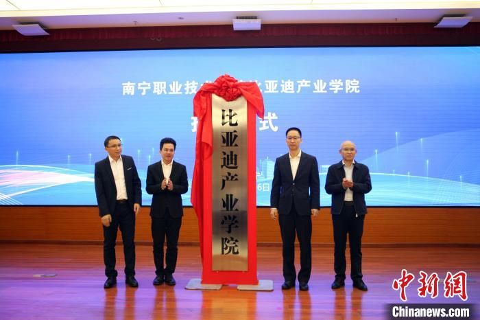 4月26日,中国新能源汽车龙头企业——比亚迪股份有限公司(以下简称比亚迪公司)与南宁职业技术学院共建的“比亚迪产业学院”在广西南宁市揭牌。这是广西首个“比亚迪产业学院”,将依托南宁职业技术学院的新能源汽车学院具体运行。