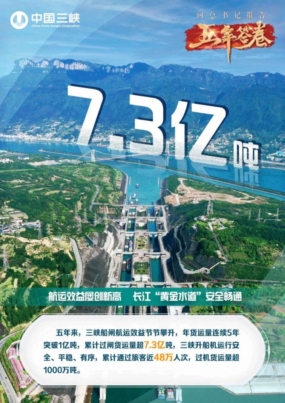 三峡工程蓄水改善了湖北宜昌至重庆间的川江航道通航条件,改写了长江这条世界第三大河流的水运发展史,让长江航道成为名副其实的“黄金水道”。