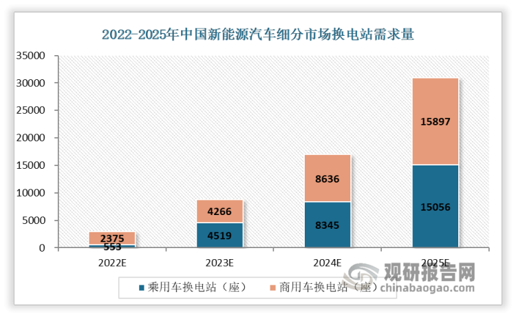 (2022年到2025年国内换电站数量 图源:观研报告网)