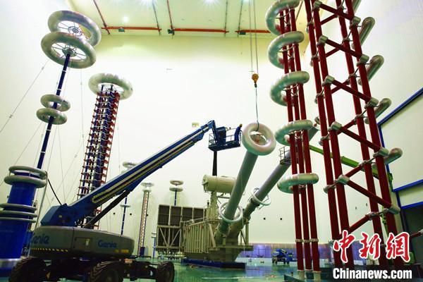 图为位于青海西宁的高海拔高压实验大厅在国内率先开展工程建设当地特高压换流变压器设备整套出厂试验。何炳勋摄
