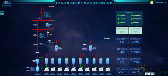该 项目是新疆公路交通行业第一个"交通+绿色低碳”分布式光伏项目,首座采用能量管理系统(EMS)的分布式光伏微网电站,通过对新能源发电、储能、负载用 电进行实时监控和统计分析,可以随时通过手持、电脑等终端查看系统运行情况,是对“双碳目标”下交通能源信息化的有益探索。作为交投集团新能源科技示范项 目,通过建立数据云端平台,实现新能源项目远程管理全覆盖,打造服务区智慧能源全生命周期运营管理的典范。