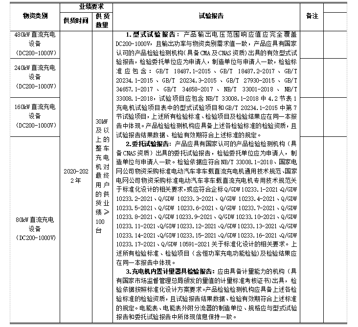 (营销项目第一次充换电设备协议库存招标采购)招标公告