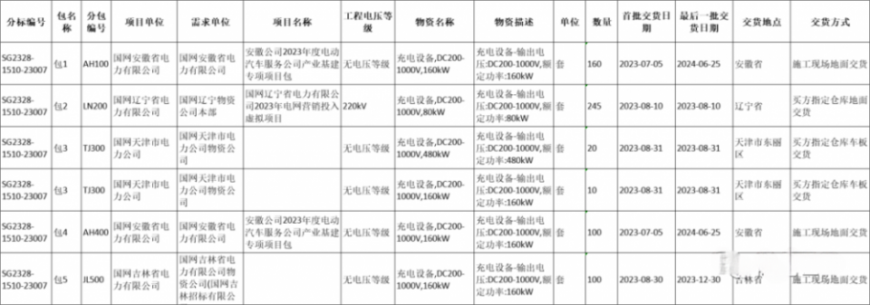 4月26日,国家电网有限公司发布2023年第一次充换电设备协议库存招标采购公告,本次招标共计5个标包,635套,详情如下: