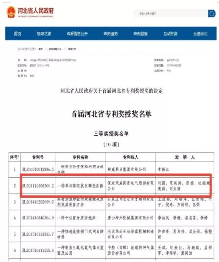 4月26日,河北省政府发布关于首届河北省专利奖授奖的决定,由保变电气组织申报的发明专利《一种单相高阻抗自耦变压器》(专利号:ZL 201110396205.2),荣获首届河北省专利奖三等奖。