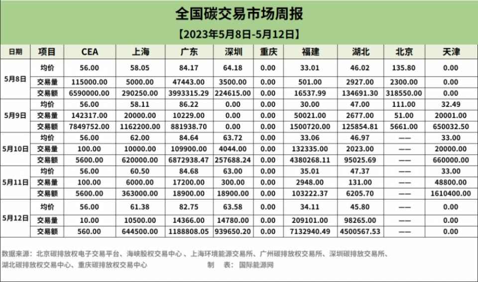 整体看几个地方碳交易市场交易量大幅提升,成为五一节后碳交易市场一波新的交易高潮。
