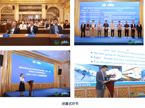 大会闭幕式上CIEEC2023技术委员会主席、合肥工业大学马铭遥教授全面总结了会议整体情况和取得的重要成果并宣读了本次大会评选出的优秀论文。中国电工技术学会韩毅秘书长、合肥工业大学电气与自动化工程学院院长向念文教授为优秀论文作者颁发荣誉证书。随后,哈尔滨工业大学电气工程及自动化学院管乐诗副教授代表下一届会议承办方介绍了哈尔滨工业大学发展建设、学科建设以及下一届大会前期初步情况,诚邀2024年相约冰城哈尔滨。