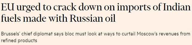 △英国《金融时报》网站报道:欧盟敦促打击进口使用俄罗斯原油生产的印度燃料