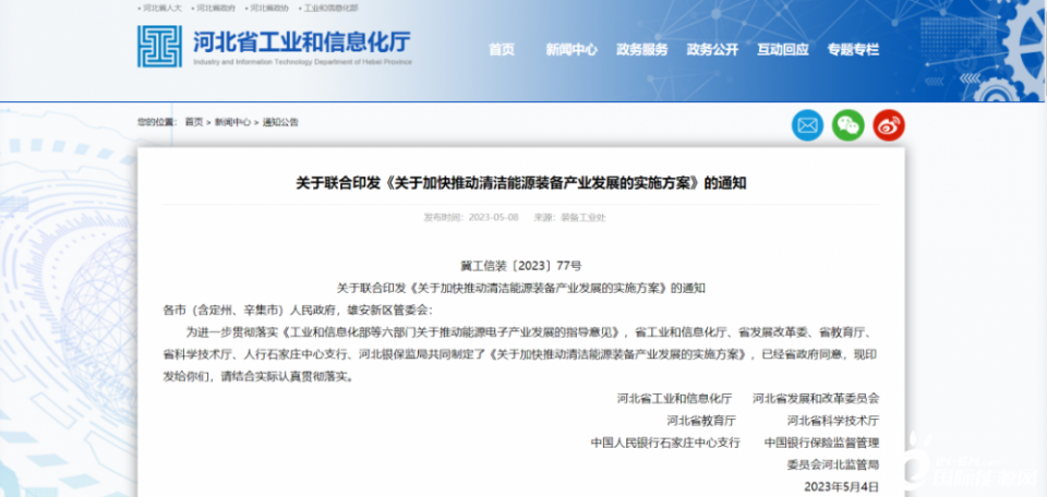 近日,河北省工信厅等6部门联合印发《关于加快推动清洁能源装备产业发展的实施方案》(以下简称《方案》)。