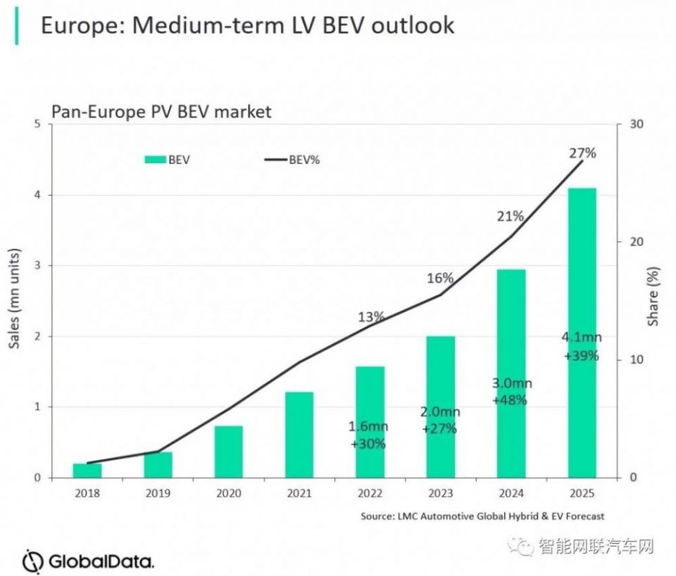 BEV的主要缺点之一是(总 体上)它们仍然比ICE的车辆更昂贵,特别是在非高级车辆和轻型商用车(LCV)的情况下。然而,可以说,BEV的总拥有成本较低。因此,价格平价仍然是 一个重要的讨论点,关于某些细分市场的BEV价格是否会具有竞争力的问题仍然存在。如果没有,可能会对顶级销售产生重大影响,因为大多数买家对价格敏感。