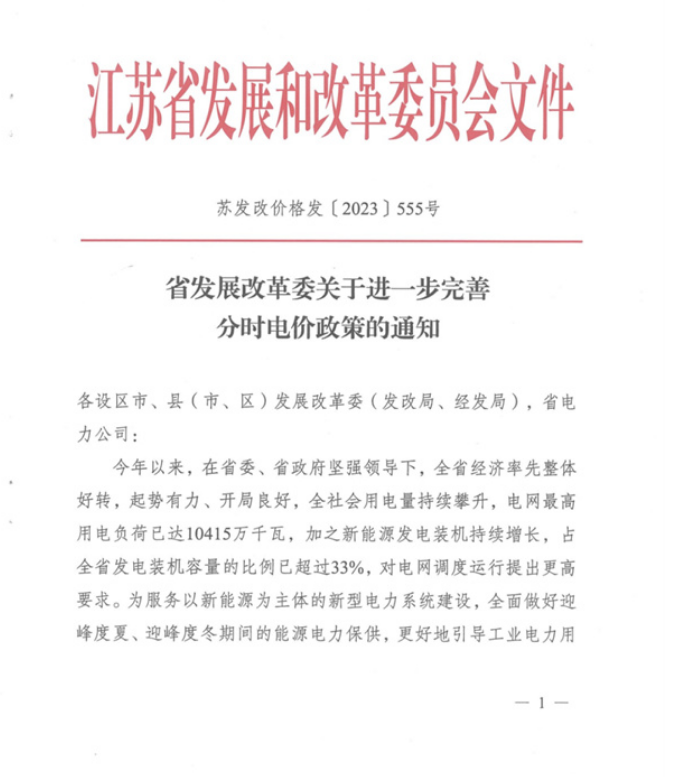 5月24日,江苏省发改委发布关于进一步完善分时电价政策的通知,其中提出,全面做好迎峰度夏、迎峰度冬期间的能源电力保供,更好地引导工业电力用户削峰填谷,服务保障民生用电需求,促进用能绿色低碳发展,现进一步完善分时电价政策,具体内容如下: