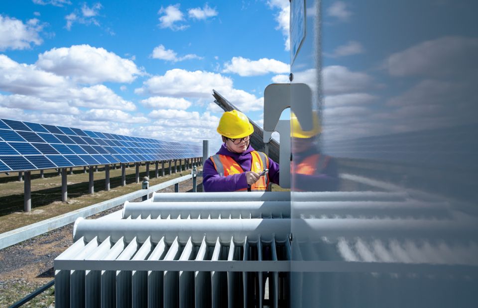 维修人员正在定期检查维护光伏板,确保发电功率正常。 邓平摄