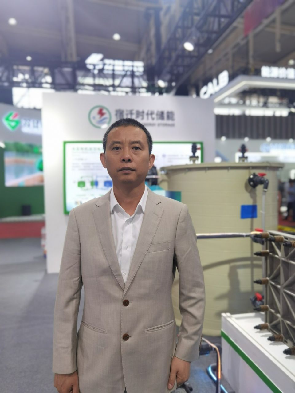 宿迁时代储能科技有限公司董事长项瞻波在展会现场介绍产品技术