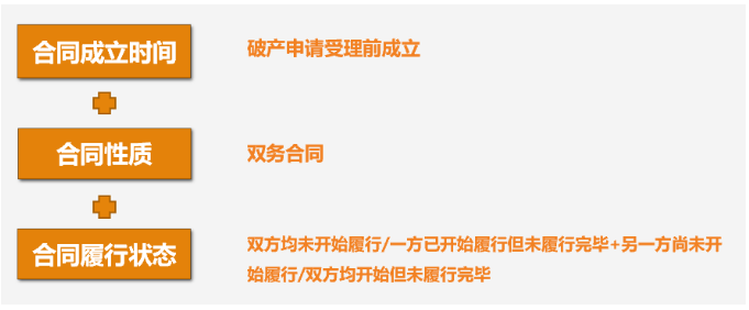 管 理人并非对破产企业所有对外签署的合同都享有挑拣履行权,能够适用《企业破产法》第十八条进行调整的合同必须满足一定的构成要件,具体见下图。我们尤其要 关注合同的履行状态,只有破产企业尚未履行完毕,双务合同项下其享有权利的同时势必要以履行相应的义务为代价,这才使得管理人的选择履行具有正当性和必要 性。
