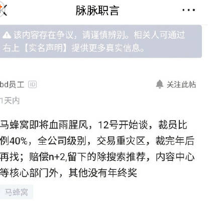 原创内容 传马蜂窝将裁员40% 2019-12-14 11:12:38 分享 炣燃科技12月14日讯 12月13日,据多名网友爆料称,马蜂窝于12日开始裁员,比例为40%,赔偿方案为N+2,留下的员工除搜索推荐、内容中心等核心部门外,其他均无年终奖。对此传言,截至《炣燃科技》发稿前,马蜂窝方面尚未回应。据马蜂窝官网显示,该公司创立于2006年,提供全球 60,000个旅游目的地的交通、酒店、景点、餐饮、购物、用车、当地玩乐等信息和产品预订服务。