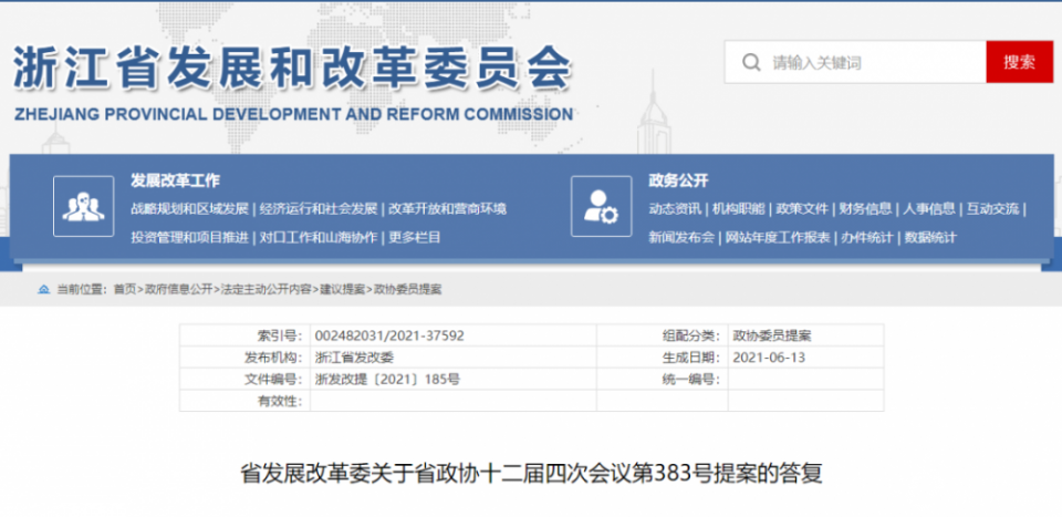 省发展改革委关于省政协十二届四次会议第383号提案的答复