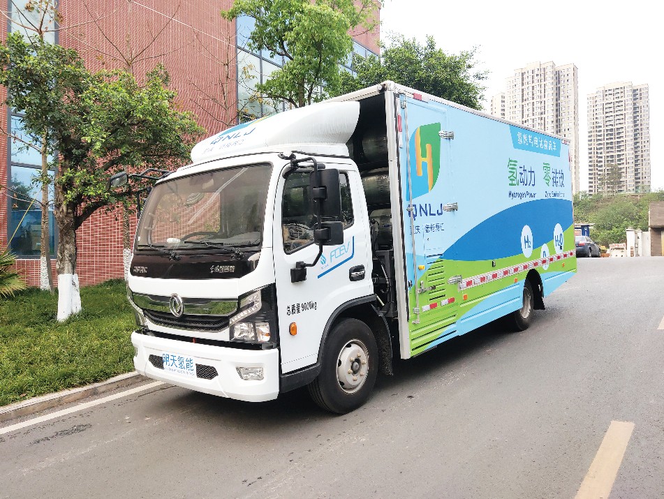 ▲图为搭载明天氢能燃料电池系统的物流车。明天氢能/供图