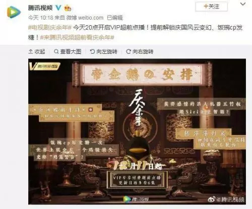 12月12日《庆余年》再次登上了搜索热点,不过这回不是因为好看,而是因为腾讯视频推出的50元预点播服务,本来充会员的目的就是为了免广告,但是腾讯视频不仅没有去掉VIP广告,甚至还变本加厉的添加剧内广告,如今又在预点播模式上打主意,收费还高得离谱,这个举动激怒了不少腾讯视频VIP用户。
