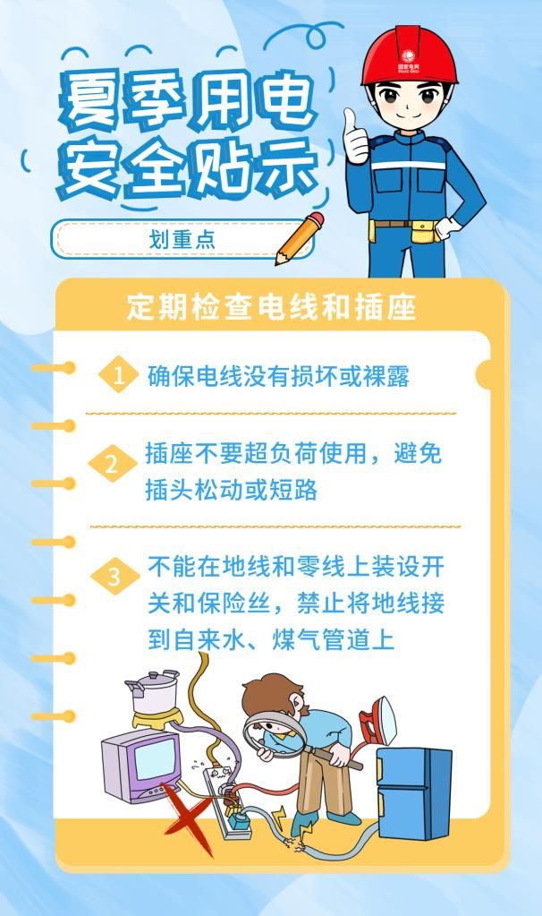 产业资讯 高温天防电器“发火”,这份安全用电“秘籍”请查收! 2023-06-27 09:39:26 分享 新华社银川6月26日电(记者于瑶)近期,我国多地最高气温突破历史极值,电力负荷创新高。居民家中大功率电器齐上阵,电器们也变得格外“敏感”。不正确的用电习惯和使用不合格的电器可能会引发火灾、触电等危险,因此,了解夏季用电安全知识尤为重要。正确用电可以有效预防潜在的安全风险,这份高温天的安全用电“秘籍”请查收!技术支持:国网银川供电公司