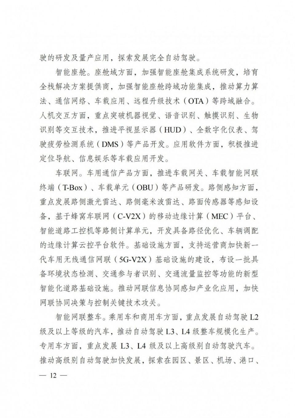 《规 划》明确创新能力显著增强。到2025年,新能源和智能网联汽车创新水平达到国际领先,创建国家级创新平台5个,达到国际领先水平的原创技术突破不低于 50项,优势领域技术成果转化不少于500项。到2030年,建成创新平台汇聚、技术攻关领先、成果转化高效的新能源和智能网联汽车产业技术创新体系。