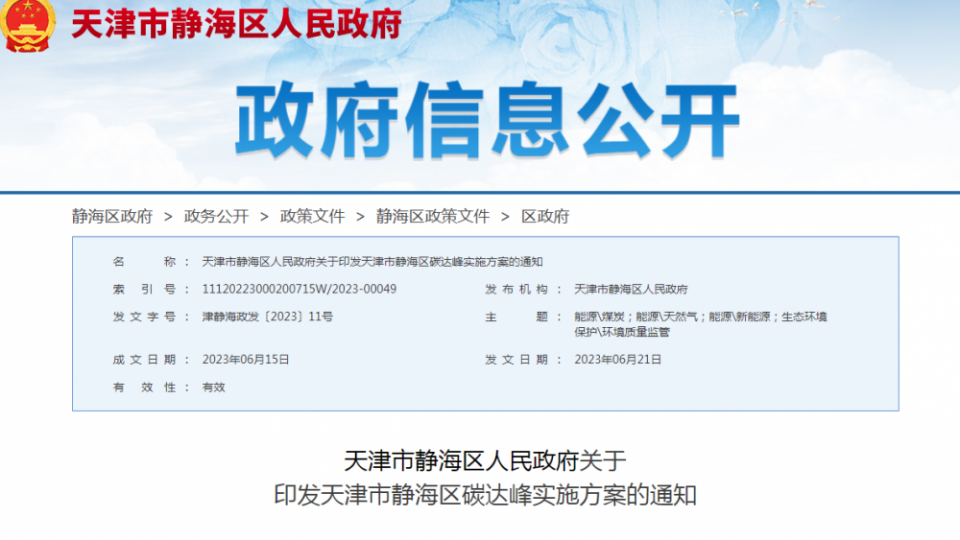 6月21日,天津市静海区人民政府发布《天津市静海区碳达峰实施方案》(以下简称《方案》)。新能源汽车、电池、氢能方面,《方案》明确: