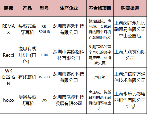 原创内容 锐思、曼诺等品牌耳机被查出不合格 2019-12-15 10:01:58 分享 炣燃科技12月15日讯 12月14日,据央视报道,上海市市场监督管理局于近日对在售的30个批次耳机抽查后发现,共有4个批次的耳机产品不合格。其中,不合格耳机产品分别是REMAX、锐思、WKDESIGN、曼诺,其产地全部来自深圳。据报道,不合格耳机声压级过大,可能会损害听力。公开资料显示,声压级是指耳机的灵敏度,声压越大,耳机的音量也就越大。国家标准中提出声压级与产品标注最大不超过正负3dB,而此次抽检不合格的批次中最大超过了13dB。