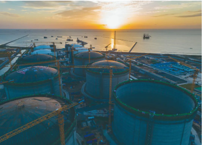 中海油盐城绿能港一期扩建工程10号LNG储罐顺利升顶到位。