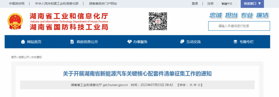 7月3日,湖南工信厅发布《关于开展湖南省新能源汽车关键核心配套件清单征集工作的通知》。