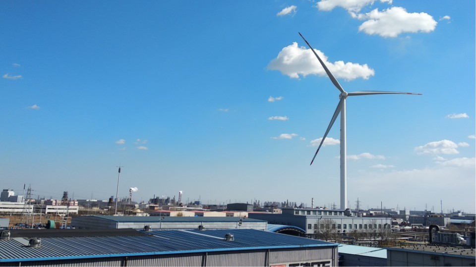 在工业园区,金风科技与传统能源企业合作,采用“自发自用、余电上网”模式,直供绿电满足了企业生产的用电需求,助力高耗能企业脱碳及厂区的绿色转型。