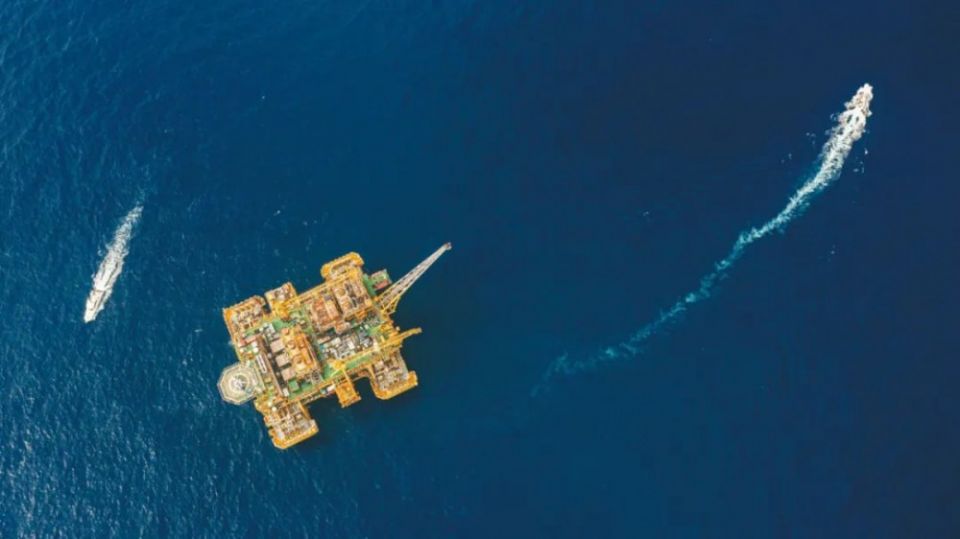 全球首个十万吨级深水半潜式生产储油平台“深海一号”俯瞰。