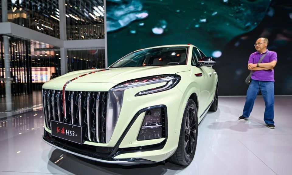 7月17日,观众在长春汽博会红旗品牌汽车展区参观红旗HS3车型。新华社记者 颜麟蕴 摄