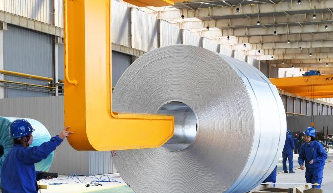 酒钢集团铝合金铸轧卷。(资料图) 毛富 摄