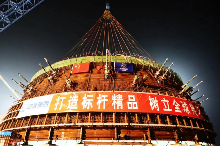 徐大堡核电项目3、4号机组业主为辽宁核电,由中核工程总承包,核岛土建施工由中核二二负责,核岛安装施工 由中核二三承担。自2021年7月28日核岛浇筑第一罐混凝土以来,工程建设各方坚持安全第一、质量第一,立足创新驱动,成立“猛虎团”联合党员突击队、 青年突击队,由党员、青年带头深入施工一线开展技术攻关,不断优化施工逻辑,推进施工工艺和工法创新。