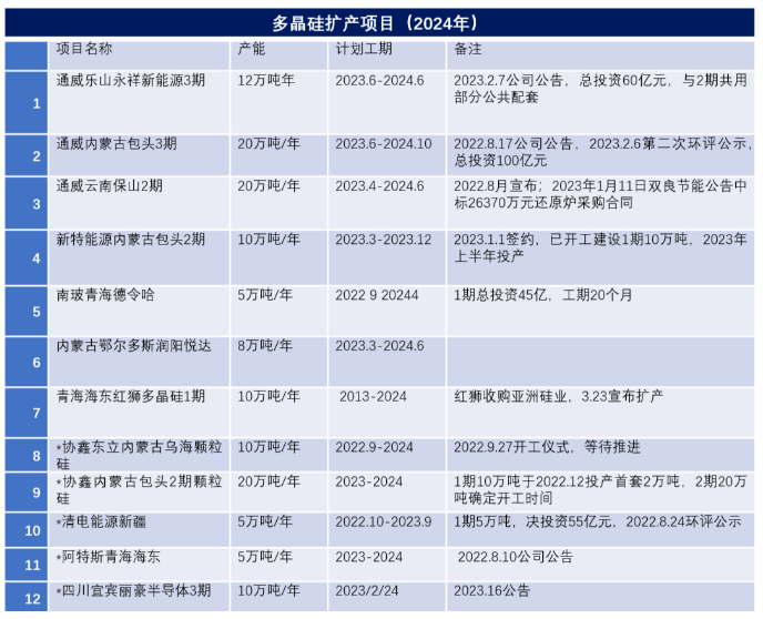 来源:吕锦标《多晶硅扩产与市场展望(2023H1/H2)》;*或存在变数