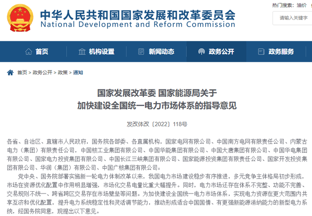 据了解,前段时间国家能源局紧急发布《贯彻落实加快建设全国统一电力市场体系若干举措(征求意见稿)》指出:研究推动适时组建全国电力交易 中心。(牵头单位:法改司、市场监管司,参加单位:北京、广州电力交易中心。完成时限:2023年底前取得实质性进展。同时稳步推进区域电力市场建设。深 化南方区域电力市场运行,尽快批复长三角区域电力市场建设,积极稳妥推进京津冀区城电力市场,研究华中东四省(鄂豫湘赣)、东北、西北等区域电力市场方 案,以区域电力市场建设强化省间互济协同保障能力。(牵头单位:法改司、市场监管司,参加单位:有关派出机构,完成时间:持续推进)