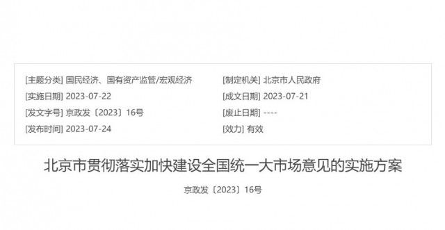 《北京市贯彻落实加快建设全国统一大市场意见的实施方案》全文如下: