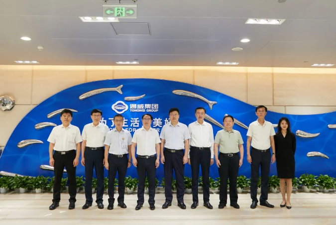 严 董对赵庆文一行的来访表示热烈欢迎,并简要介绍了公司战略规划及发展思路。严董表示,多年以来通威始终坚持实业报国,在大力发展水产养殖和食品加工行业的 同时,聚焦光伏产业链,持续进行“渔光一体”项目建设,走出有通威特色的发展道路。淄博市是通威出川战略的第一站,对整个通威都有特殊的历史意义,双方合 作渊源深厚、成果丰硕,高青县渔光小镇项目一、二期的顺利开展,离不开淄博市各级政府的大力支持,希望未来双方进一步加强沟通交流,为融合生态建设和文旅 产业提供创新思路,共同促进区域经济的高质量发展。