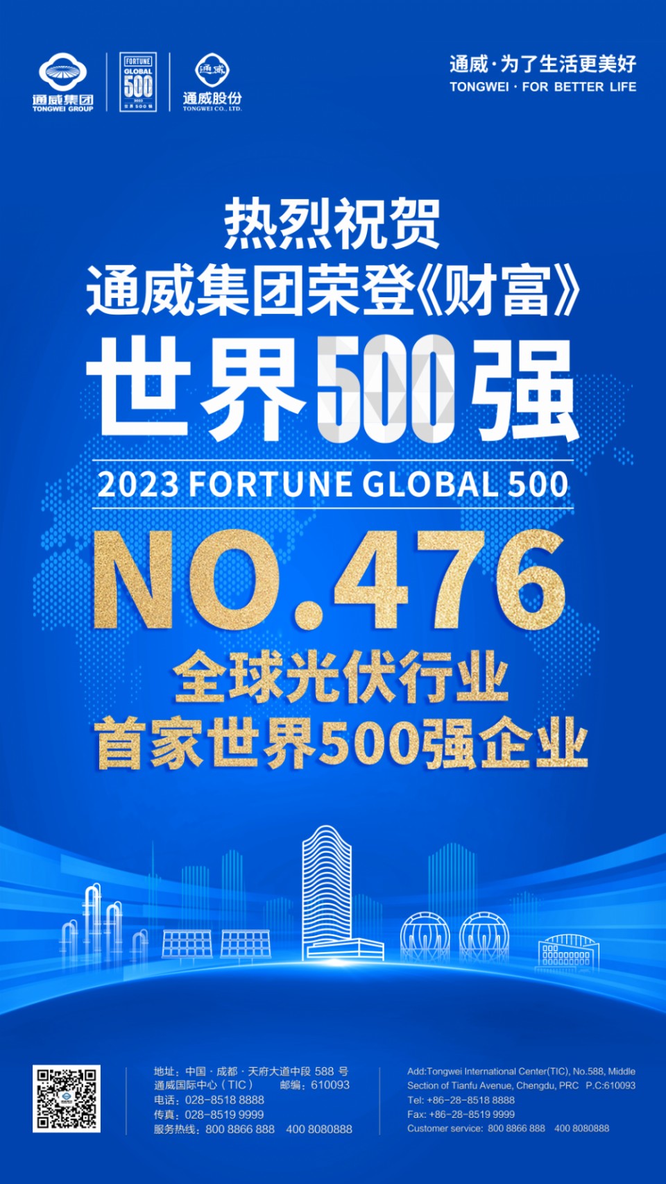 8月2日,2023年《财富》世界500强排行榜正式发布。通威集团以营业收入2148.82亿元首次入列榜单,并位列榜单第476位,成为全球光伏行业首家世界500强企业。