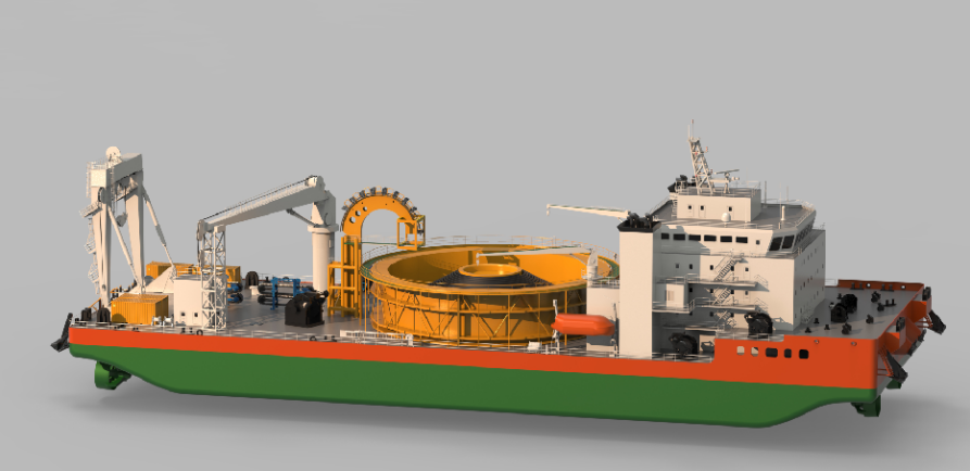 国内首艘5000吨级载缆量新型海底电缆施工船“启帆9号”。