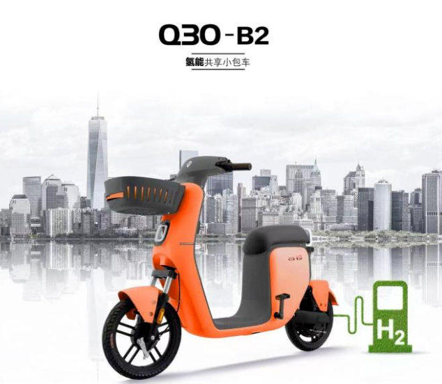 8月8日,台铃集团、 协氢新能源联合在广州世界氢能和燃料电池产业博览会上发布了一款风冷氢能共享两轮车。