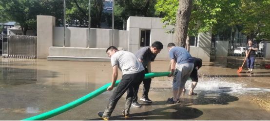 物探院党员突击队、志愿队及工会、团委志愿者及时对办公区域进行淤泥清理和消杀,检验电力设备,有序做好灾后重建,加速恢复生产工作正常秩序。