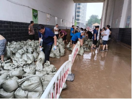 二勘局华谊物业公司党总支抢险救援突击队为在京涿各住宅项目部关键部位配备防汛沙袋700余个,最大限度降低洪灾造成的危害;冒雨为北京福慧嘉苑小区抽排积水、抢修自来水供水管道。